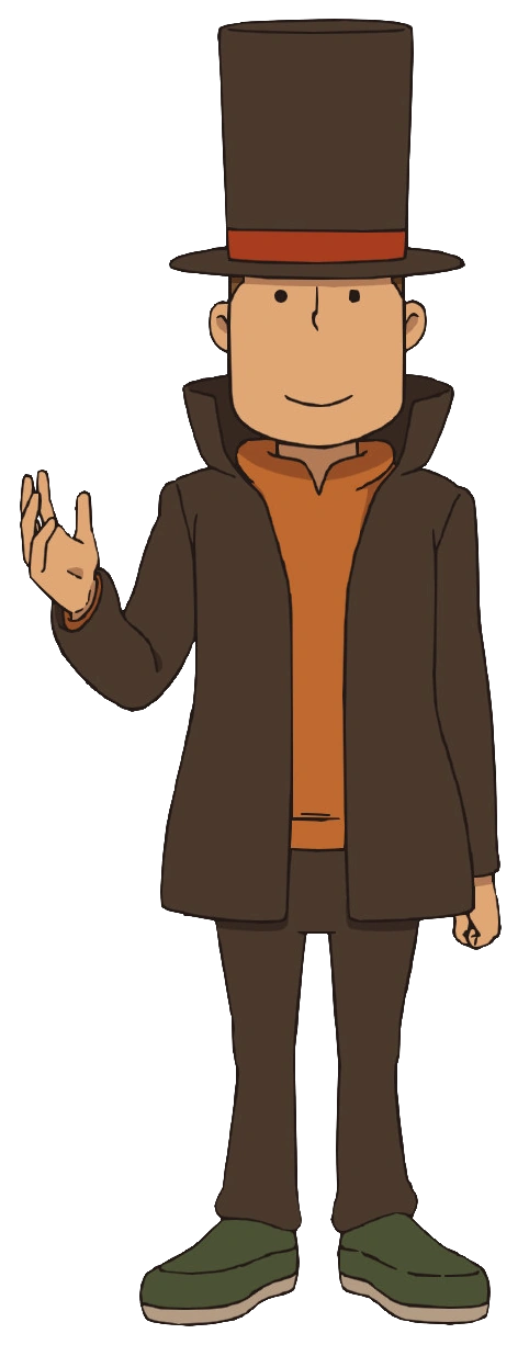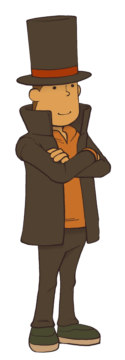 | Sein Faible für Knobeleien und seine Fähigkeit, die schwierigsten Rätsel zu lösen, ließen Hershel Layton schon oft in den Schlagzeilen erscheinen. Sein Zylinder, der ihm wie angegossen passt, ist sein Markenzeichen. – Das geheimnisvolle Dorf |