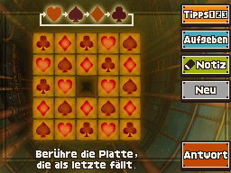 Rätsel in Professor Layton und das Vermächtnis von Aslant 001 • 002 • 003 • 004 • 005 • 006 • 007 • 008 • 009 • 010 • 011 • 012 • 013 • 014 • 015 • 016 • 017 • 018 • 019 Nicht in der EU-Fassung: Anmerkung: