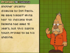Don Paolo appears briefly in the opening scenes of Eternal Diva. Don Paolo appears when Professor Layton accuses an elderly lady of silencing the bell of the Clock Tower. It turns out that the elderly woman is, in fact, Don Paolo in disguise. Don Paolo then jumps off Tower Bridge and flees with the use of an umbrella that converts into a small propeller as Layton and the authorities give chase. Inspector Chelmey and Barton also appear in this scene.