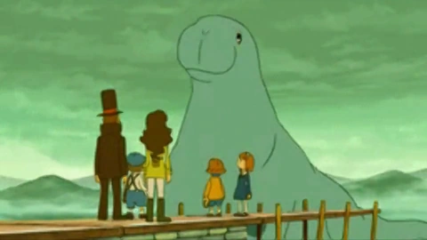Many years after he left Layton, Luke stays behind on a sinking ship on a stormy sea to help a woman named Kamilla give birth as everyone else runs for the lifeboats. The baby is born safely, but Kamilla can’t make it. She tells Luke to bring the baby to Hershel Layton in London so he can find her father, Kyle Azan, an archaeologist who went missing as he got too close to the relics’ puzzle.