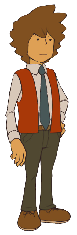 In the Miracle Mask flashbacks, when he was 17, Layton wore no hat, a red waistcoat with a white shirt, and a blue tie. He wore dark green pants with brown shoes. His hair was in an afro-like style.