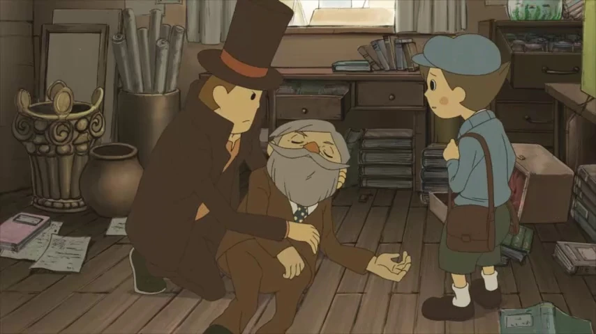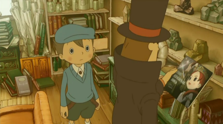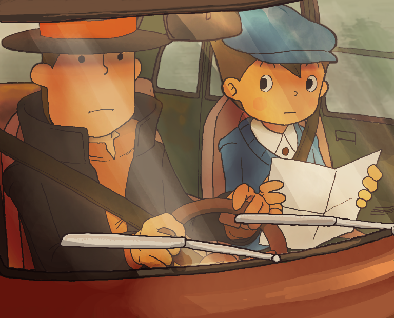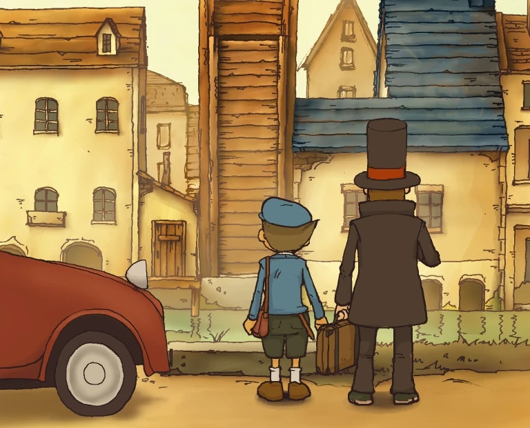The professor's journey in Last Specter began while in his office at Gressenheller University. His housekeeper, Rosa was given the morning's post and she entered Layton's office to catch him sleeping on the couch. She began nagging him and handed him the letters. After reading one, he found that the letter was from Clark. Layton then rushed out of his office to his car after taking a sip of the tea Rosa had made him. On the way out of Gressenheller, Emmy saw the professor's car and immediately chased him down. The two finally met and put aside their differences, and she joined him as his assistant, aiding with the mystery of Misthallery.
