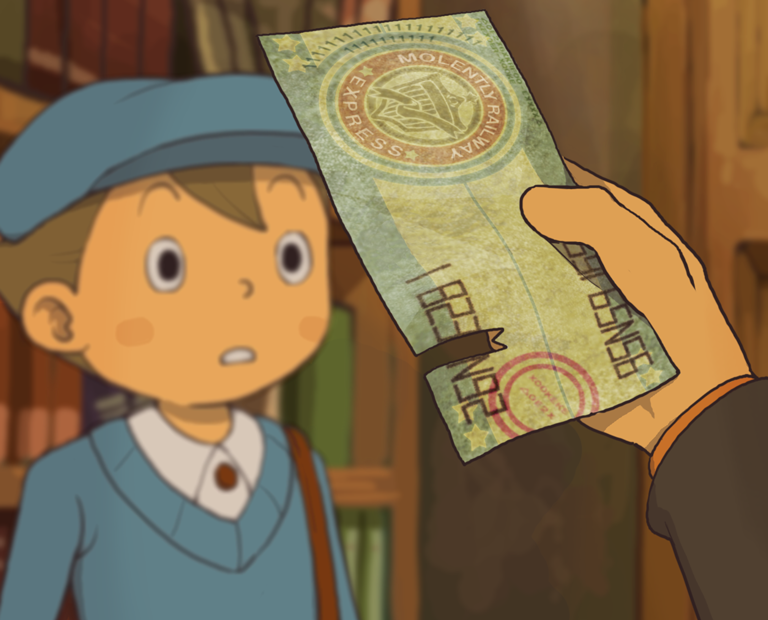 Layton visits Luke’s room and notices that Luke had left a puzzle to his whereabouts. Luke had figured that he could call for Layton’s help if he got into danger.