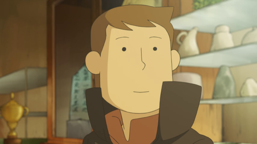 Once Layton and Emmy arrived at Misthallery, they began searching for Clark's house. Once they had located the mayor's residence, Clark was delighted that Layton stopped by for a visit, but when Layton asked about the letter, Clark didn't know what he was talking about. Clark then explained that his son, Luke, had been holed up in his room and avoiding Clark as of late, so Layton decided to talk with him.