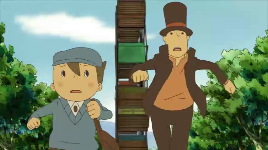 Layton and the others try to get off the Fortress via the Laytonmobile, but their path is blocked by debris. Managing to move it out the way, they continue driving. But part of the pathway collapses, and they accidently drive off the Fortress. Luckily, Layton remembers that Don Paolo had made some "adjustments" to his car, and with a push of a button, wings and a propeller extend from the Laytonmobile. Don Paolo watches from a nearby rooftop, and congratulates Layton.
