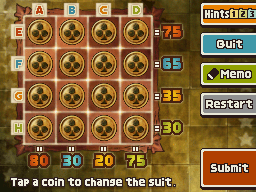 The total dollar amount, in thousands, of the 16 buyers at this table is summed up at the end of each row and bottom of each column. Can you figure out which token each buyer is holding?