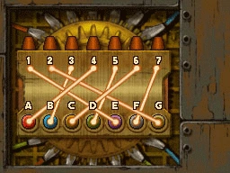 First, try pressing some buttons and determining the rules for how the lamps are affected. After that you can try to work out which buttons are connected to which lamps.