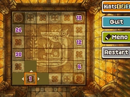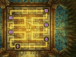 There are numbers written on some of the floor tiles that show the order in which the tiles should be cleaned. Starting from tile 1 and proceeding from tile to adjacent tile in the correct order, can you find a way to clean all of the tiles without repeating any? To avoid dirtying the newly cleaned floor, the last tile you clean must be next to the door.