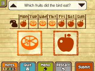The bird ate three pieces of fruit on Monday, Tuesday and Wednesday. In order to have three pieces on Monday, did he eat oranges or apples? How, what about Tuesday and Wednesday?