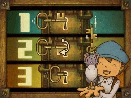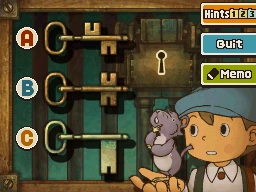 Layton, Luke, and Emmy need to escape the police station! Luckily, Toppy has brought them a key ring, but only one of the keys fits the lock.