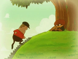 A and B race up a flight of steps to get to the top of a hill.