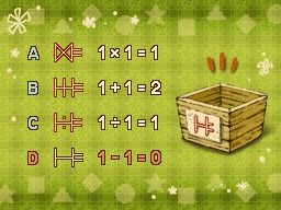 Unlike the other chests, the equation on chest D comes to 0, which can only mean that there's nothing in it!