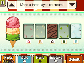 "B is vanilla, right? I'd prefer one of the ice creams next to that to be on top!"