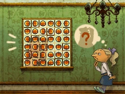 The sticker that goes is the top-left corner already has the correct orientation. Look for a sticker with apples arranged in an "L" shape that will fill the edges of this corner.