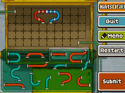 Two segments of cable are already in place. Use your stylus to move, rotate and place the red and blue segments on the grid and connect the green wires.